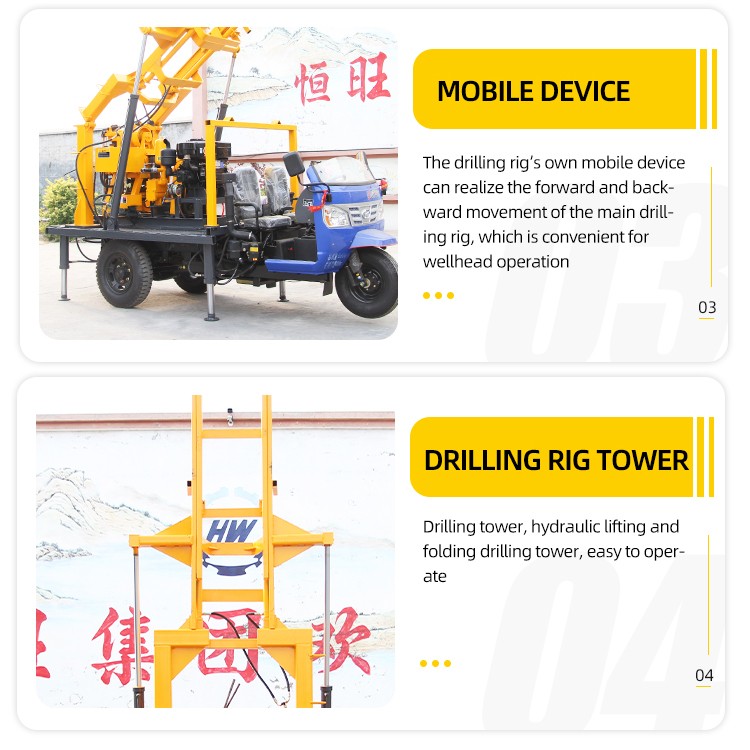 2. Hengwang well drilling equipment is specially designed for the perfect match between the engine and the hydraulic system, which improves performance and reduces fuel consumption by 7%;