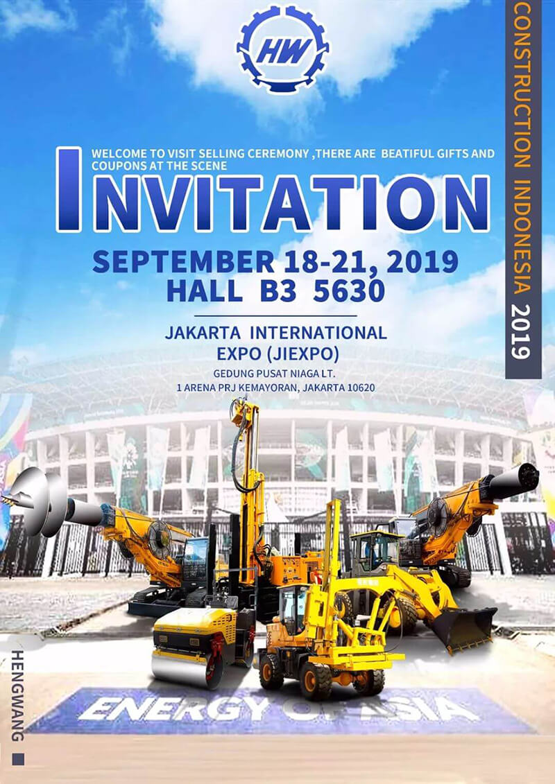 The biennial "Indonesia International Mining,Construction Machinery and Construction Technology Equipment Exhibition" will grandly start.Hengwang Group will bring drill machine, pile driver and road construction equipment to participate in this exhibition on September 18,2019,.