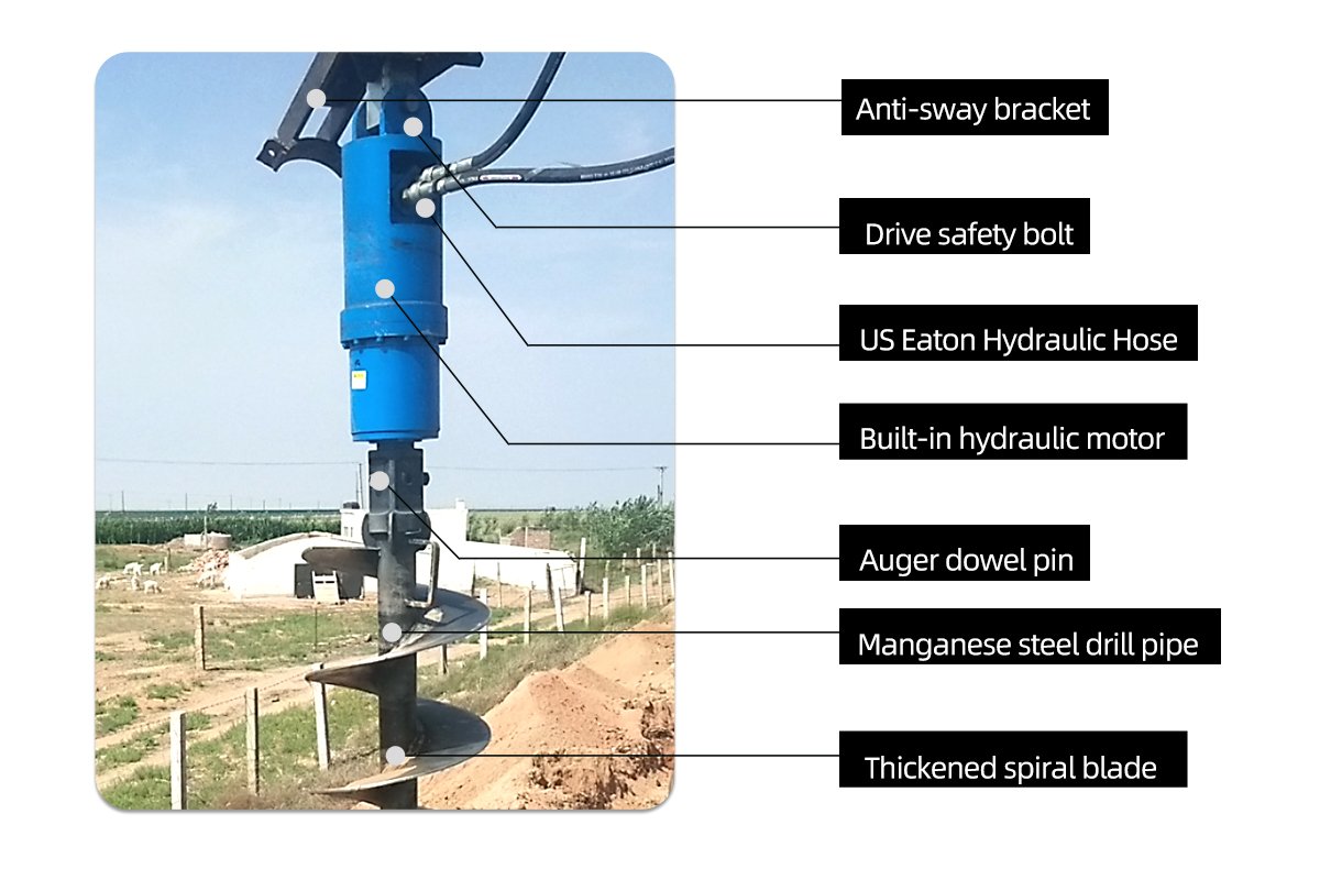 2. The installation specifications have been debugged before leaving the factory. After receiving the goods, The user only needs to remove the latch at the connection of the bucket and then replace it with our power head (can be used as a quick connector).
